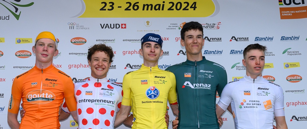 La dernière étape disputée autour de Pomy a confirmé la domination française sur cette 53e édition du Tour du Pays de Vaud juniors. Déjà solide leader après sa victoire à Villars-sur-Ollon, Paul Seixas a parfaitement maîtrisé la course pour s’adjuger le classement général, tandis que son compatriote Aubin Sparfel s’est imposé au sprint au terme des 97 km de course.