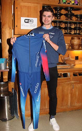 Le sociétaire du SC Bex avait été invité par le président Alain Witz. « Je le connais bien, avoue ce dernier (normal, Valentin est l’ami de sa fille Justine!), je suis un peu ses courses, le biathlon est un sport très dur et il le sert avec talent, une abnégation remarquable et une volonté de réussir exemplaire. Oui, il mérite qu’on le soutienne.» Avant le dessert meringué, une de ses combinaisons a été mise aux enchères. Cet élan de générosité a rapporté au citoyen d’Ollon la somme de frs 540.-.